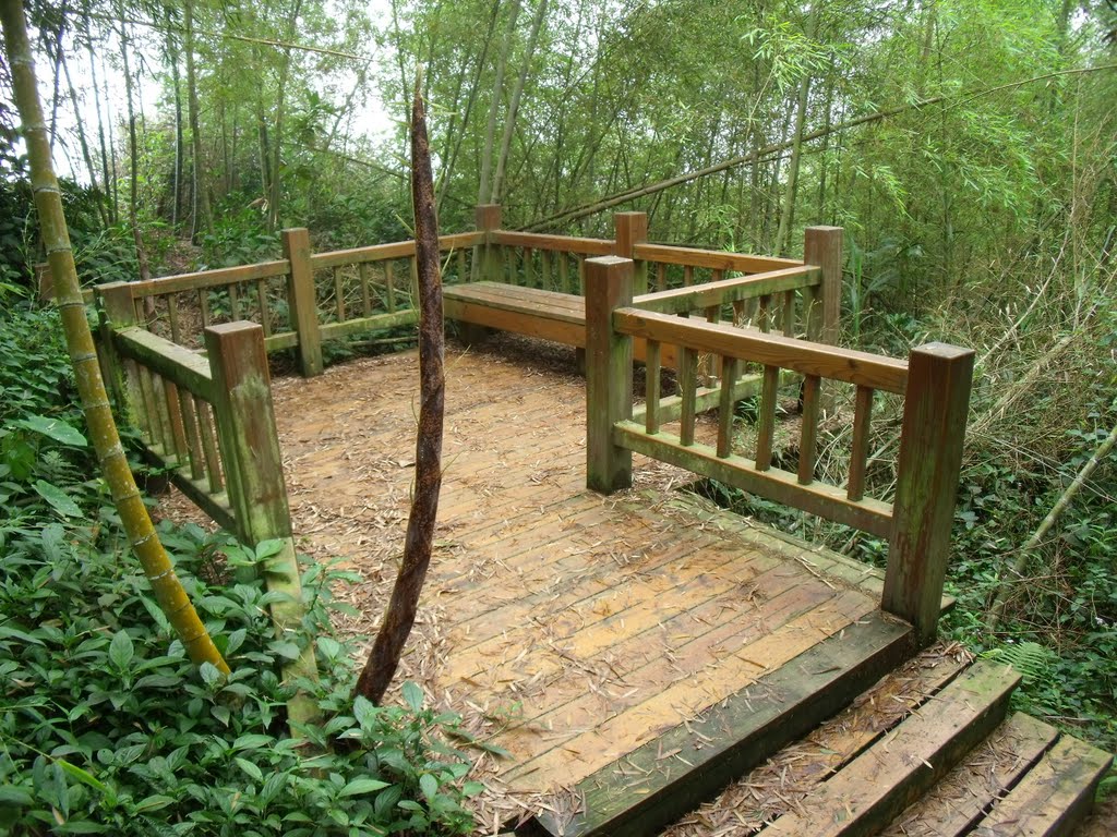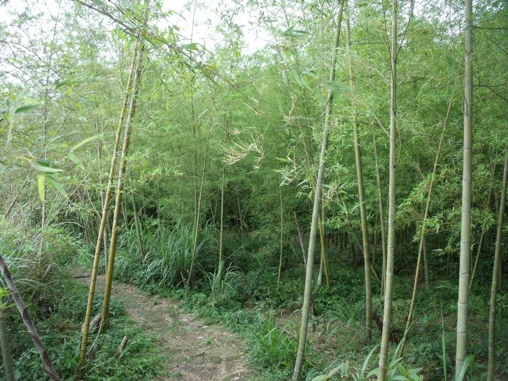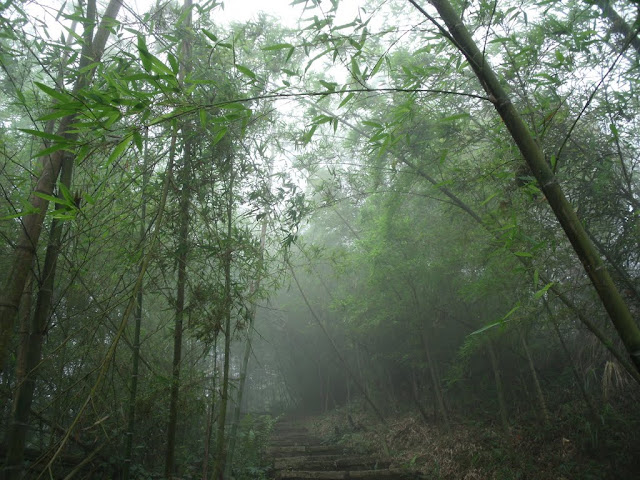 經過碎石陡坡並走了一小段石階後,眼前出現一片綠色竹林,令人有種怡然自得的禪意