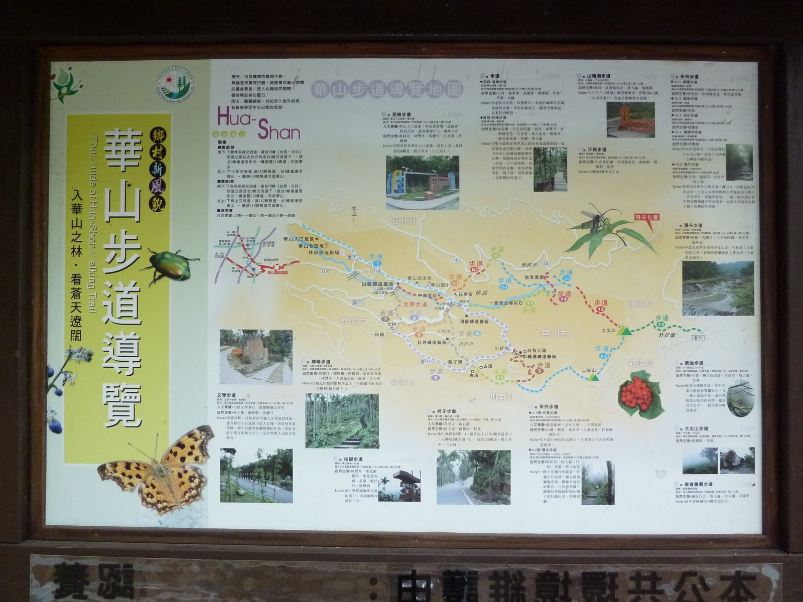 大尖山共有三個登山口,另一個位在嘉義縣,另外一個在哪忘了。不同的登山路線各有不同的風景,位於華山教育農園旁的這個登山口是屬於原始步道,石階上佈滿枯葉,兩旁都是雜草樹林,偶爾還會看到幾隻野生蝴蝶和蜜蜂飛過,而且從登山口到山頂全程完全就是不斷地在爬石階。