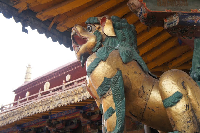 大昭寺內殿堂眾多 最恢弘的主殿「覺拉康」裡面 供奉著由唐玄宗親自選定的洛陽白馬寺釋迦牟尼十二歲等身鍍金佛像 及松贊干布、文成公主和尼泊爾赤尊公主的塑像